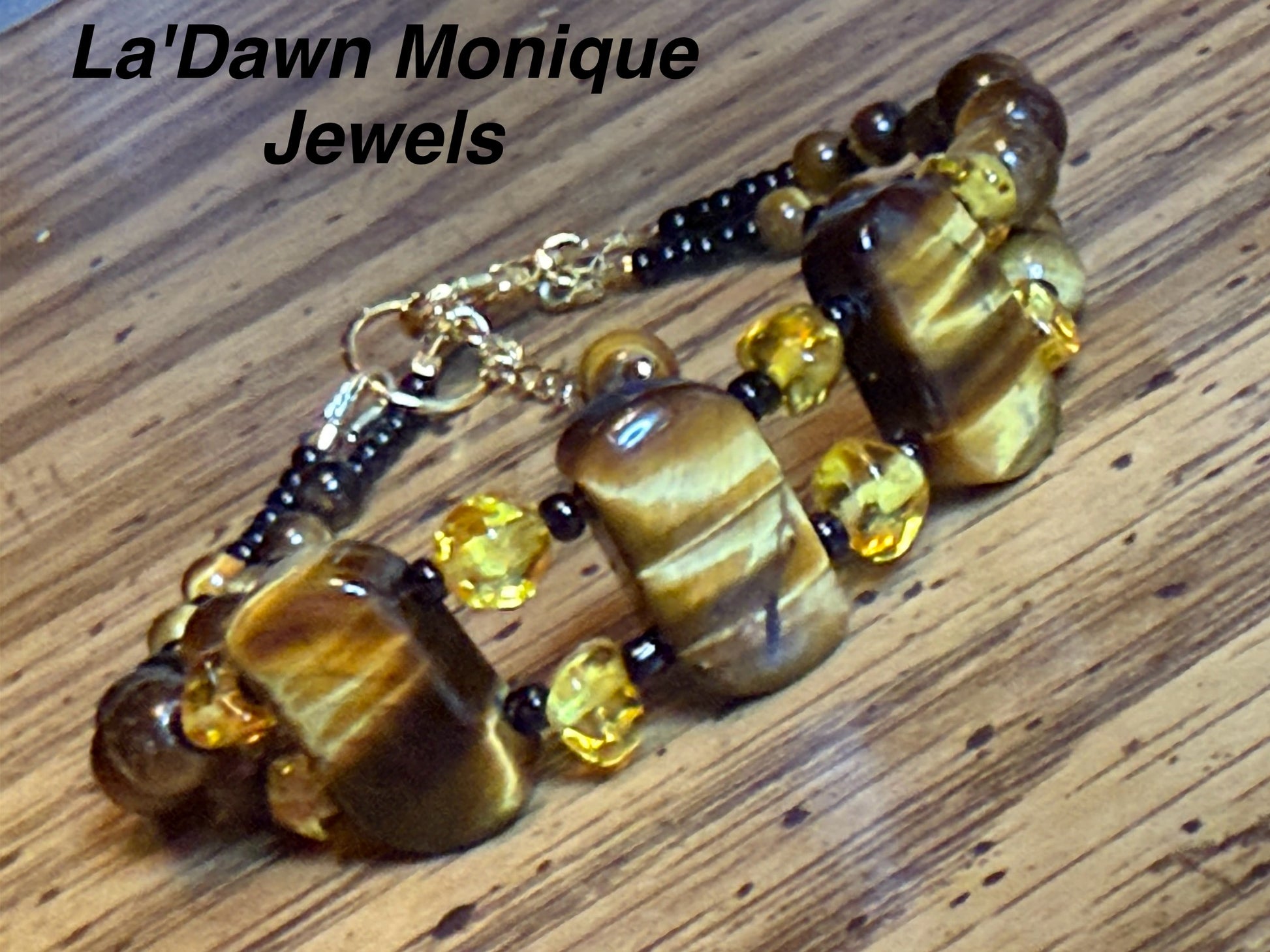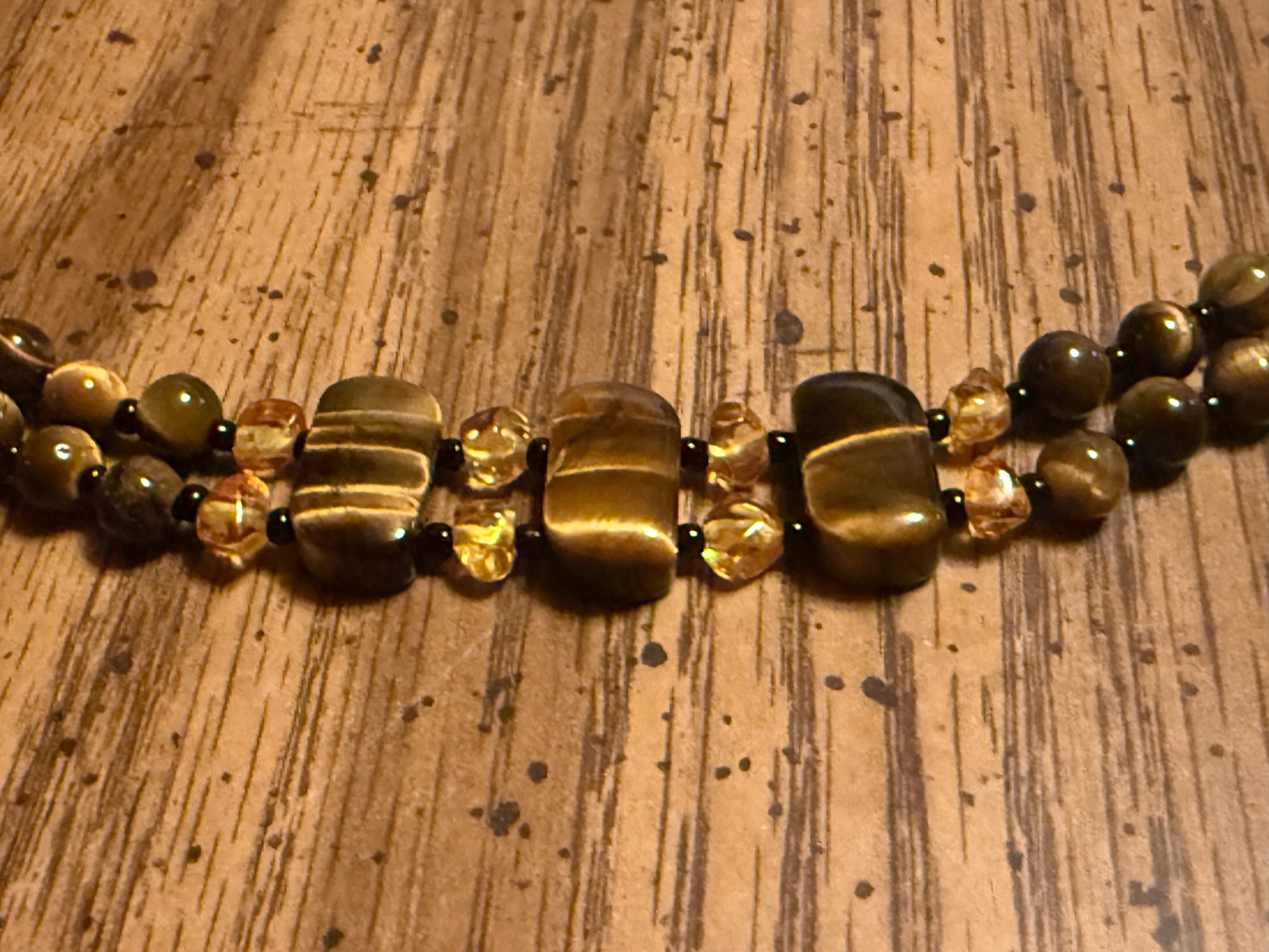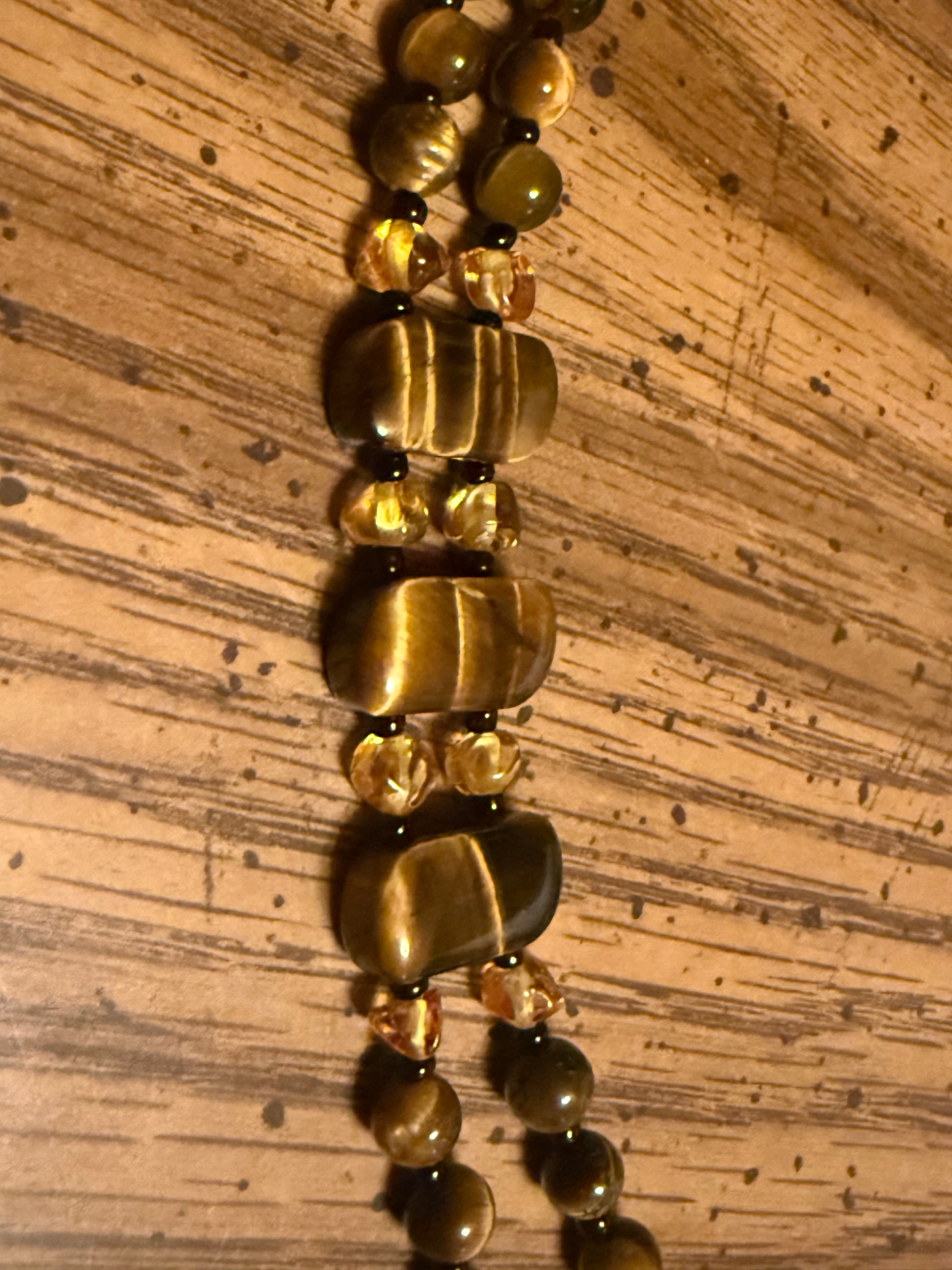 AAA Tiger Eye & Baltic Amber gemstone bracelet very chatoyant with gold plating.
