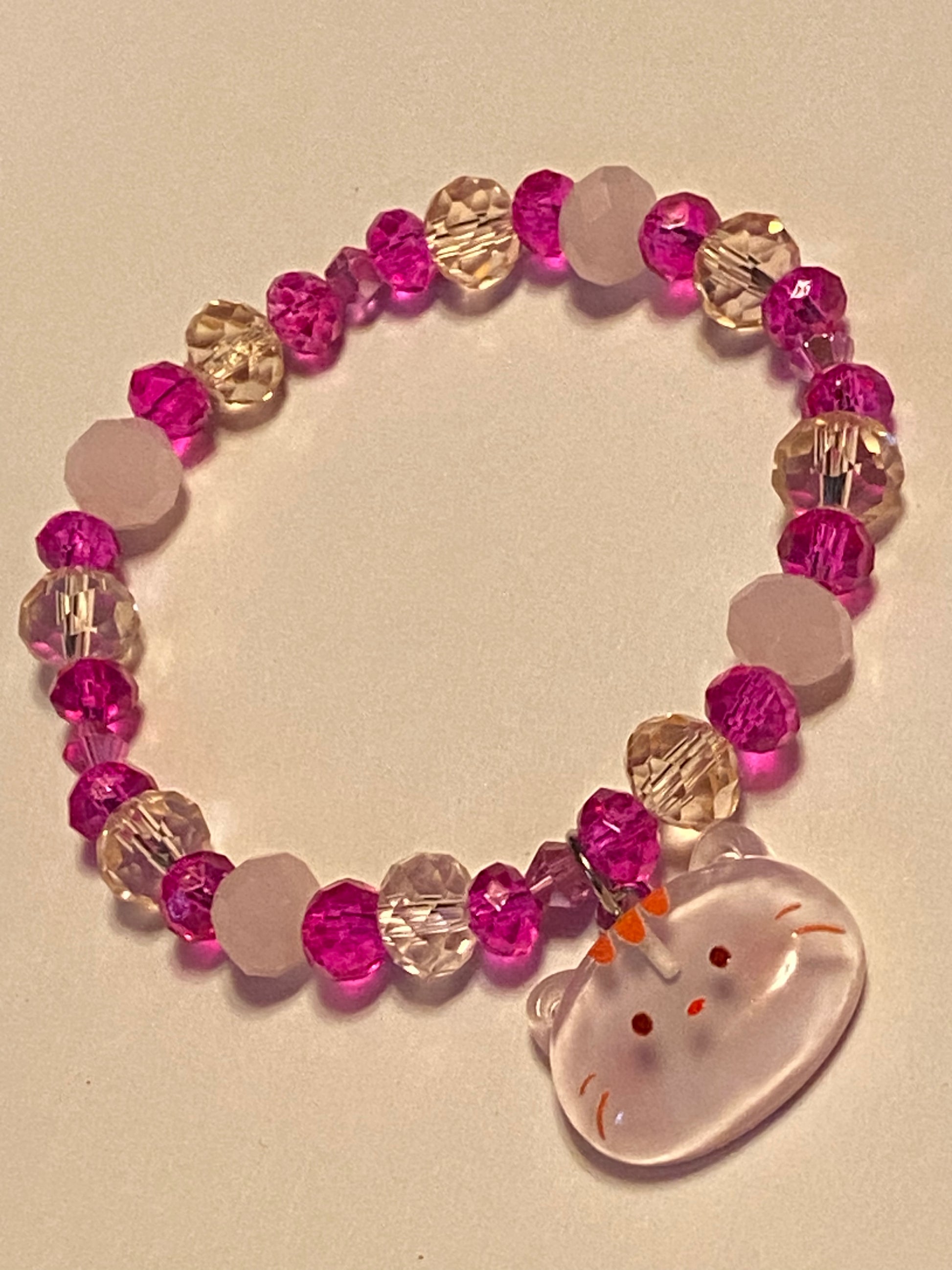 Adorable cat glamorous pink Crystal beaded stretch bracelet! So cute!