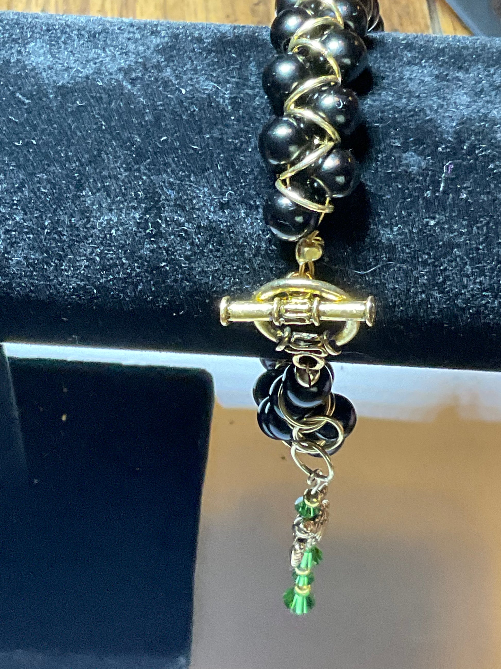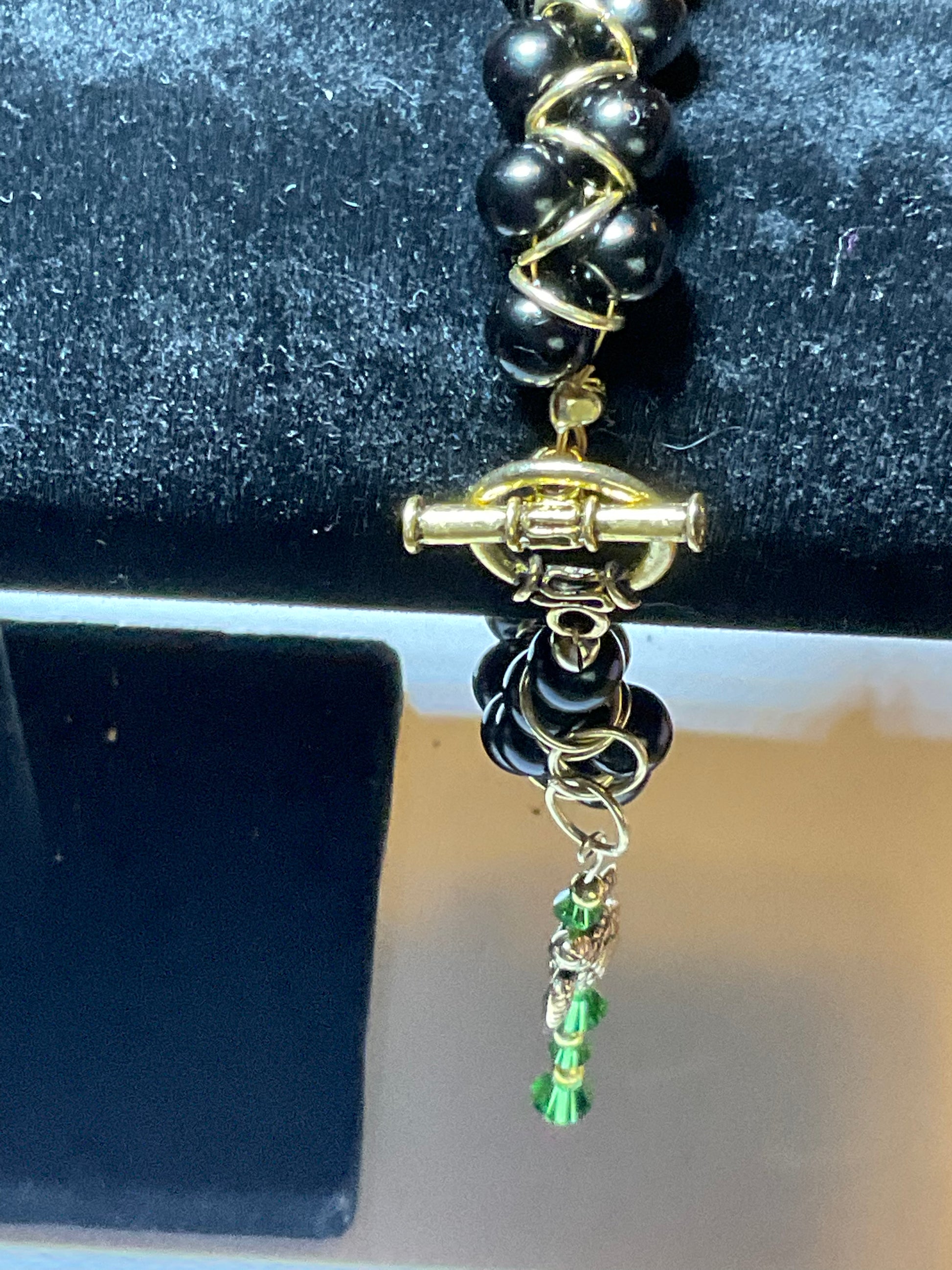 Black Glass Pearl 18 Kt gold plated Goddess Bracelet