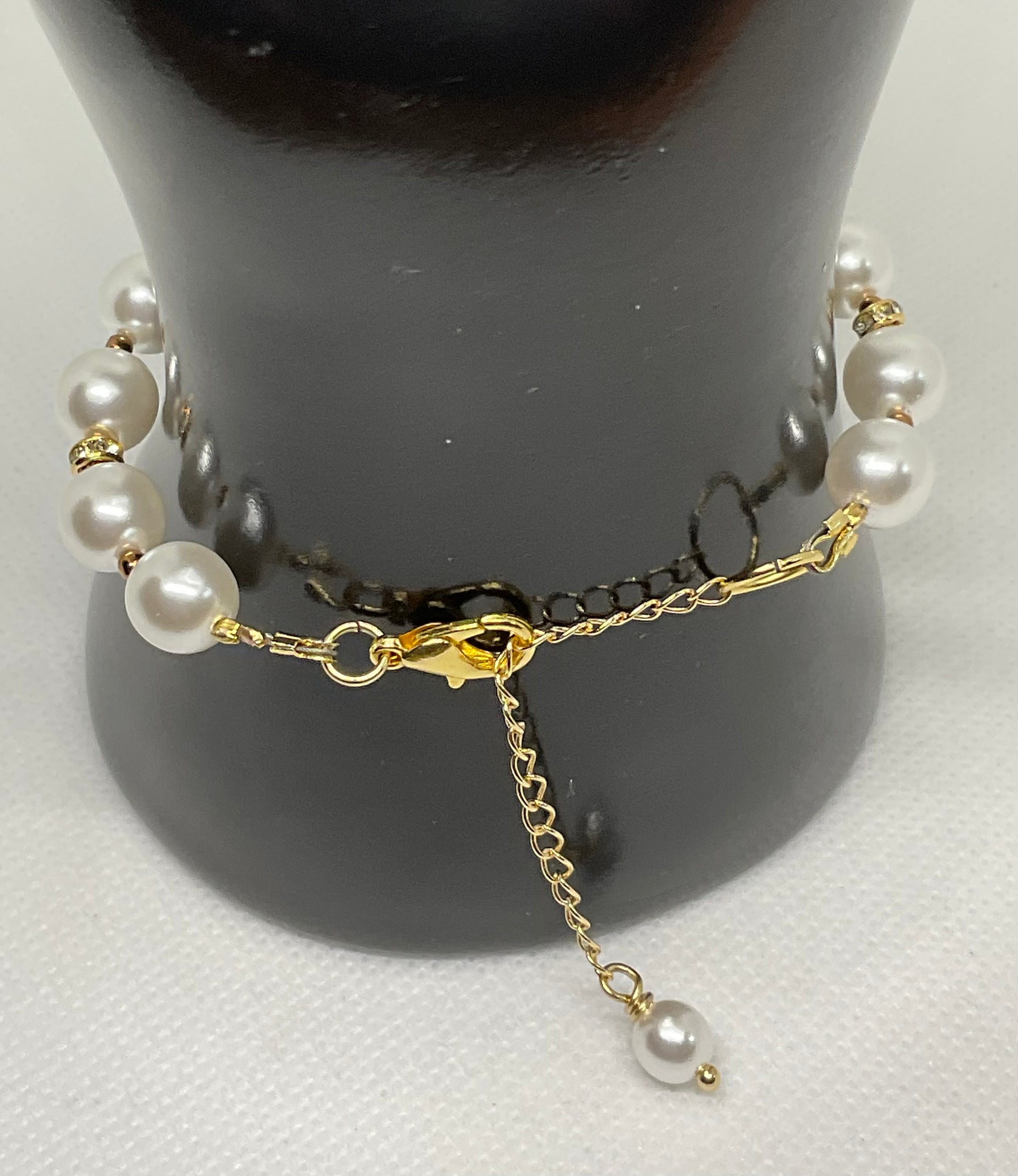 Crafted with 14kt gold plating and featuring both White Glass pearls and Bronze Glass seed beads, this adjustable bracelet is adorned with a charming pearl dangle and includes an extension chain. Unique and one of a kind limited edition bracelet! Perfect for adding a touch of elegance to any outfit. Your bracelet will arrive beautifully gift boxed.