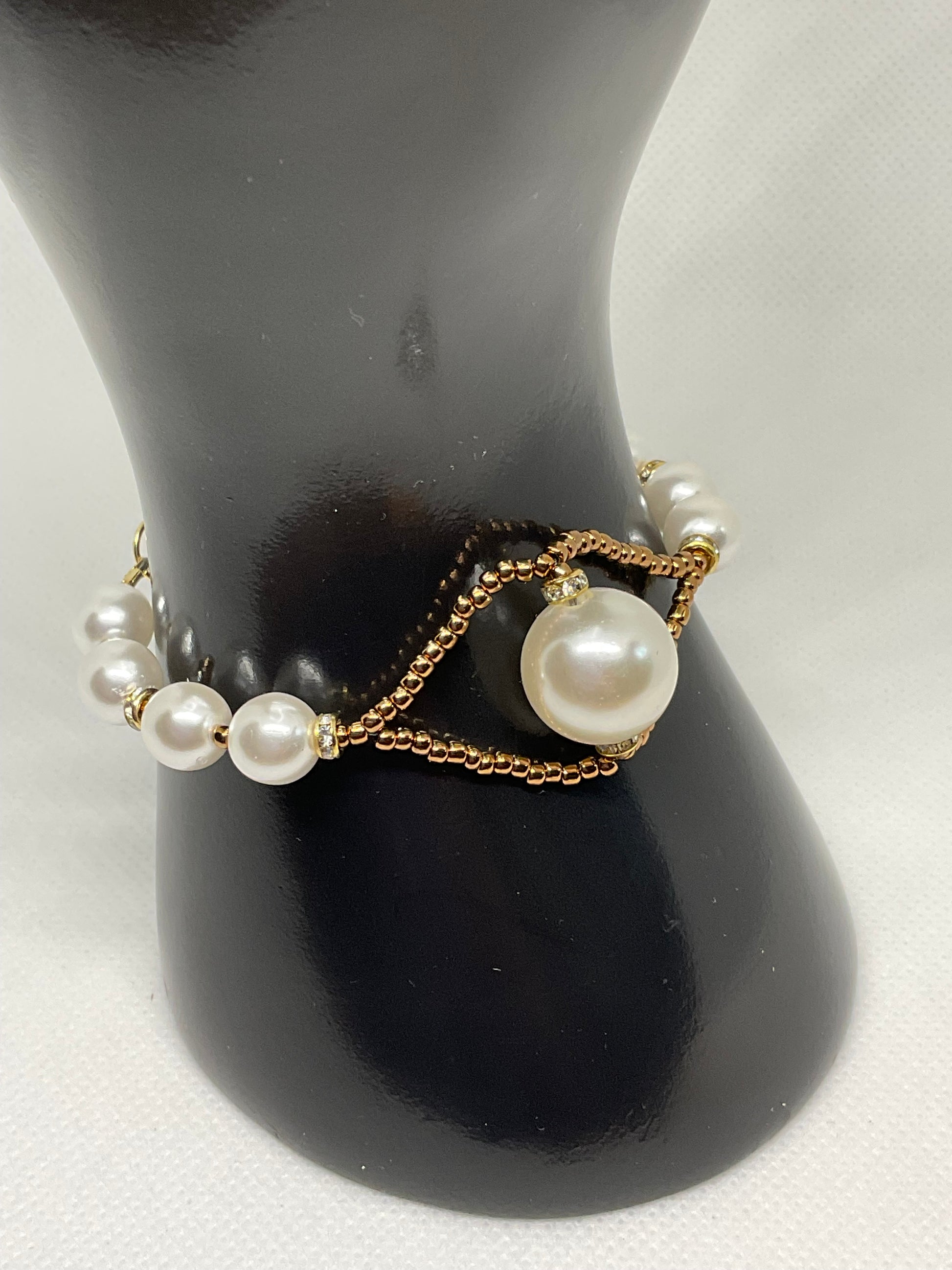 Elegant 14kt gold plated Pearl and Bronzebeaded Bracelet