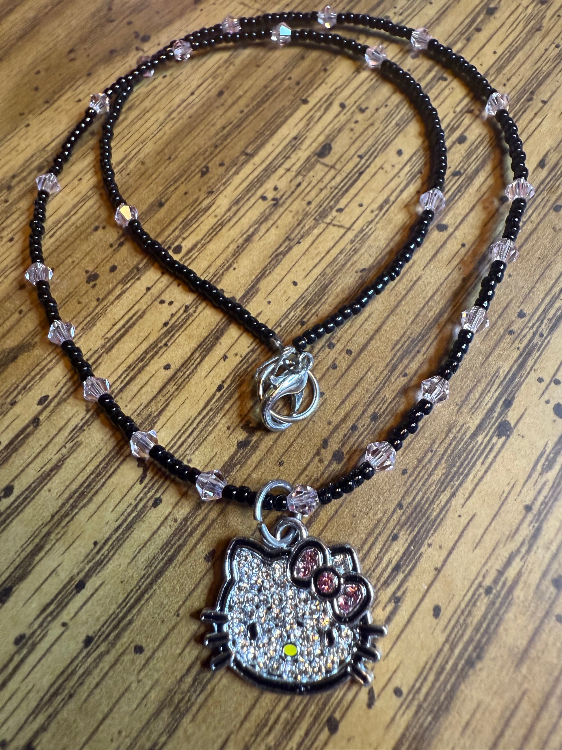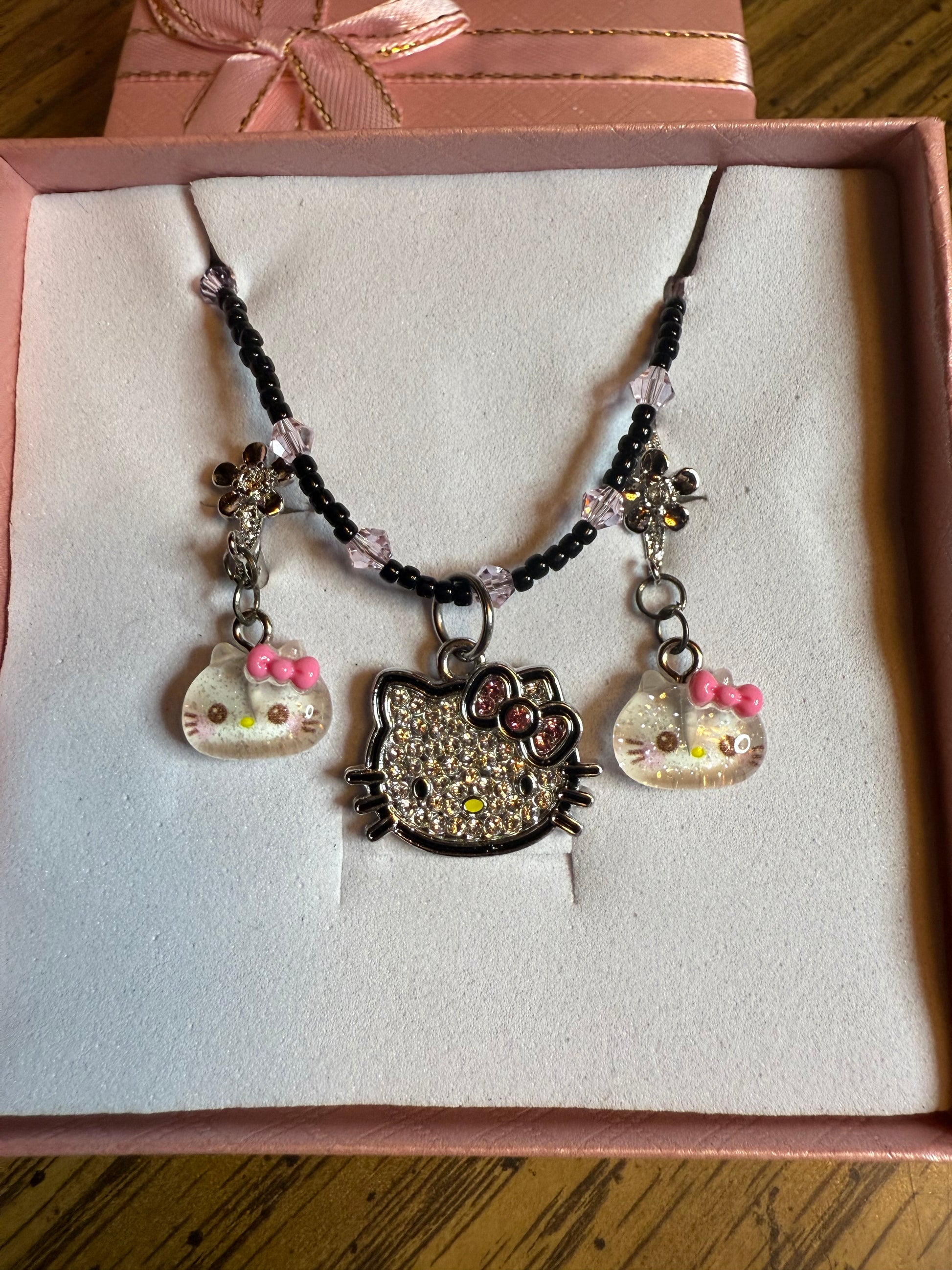 Add a touch of whimsy to your outfit with this Kitty Necklace and Bracelet Set. The black glass seed beads and pink crystals add a touch of sparkle, while the silver alloy kitty pendant and matching earrings bring in a playful element. With a stainless steel lobster clasp, this set is both stylish and durable. Will come beautifully gift boxed.