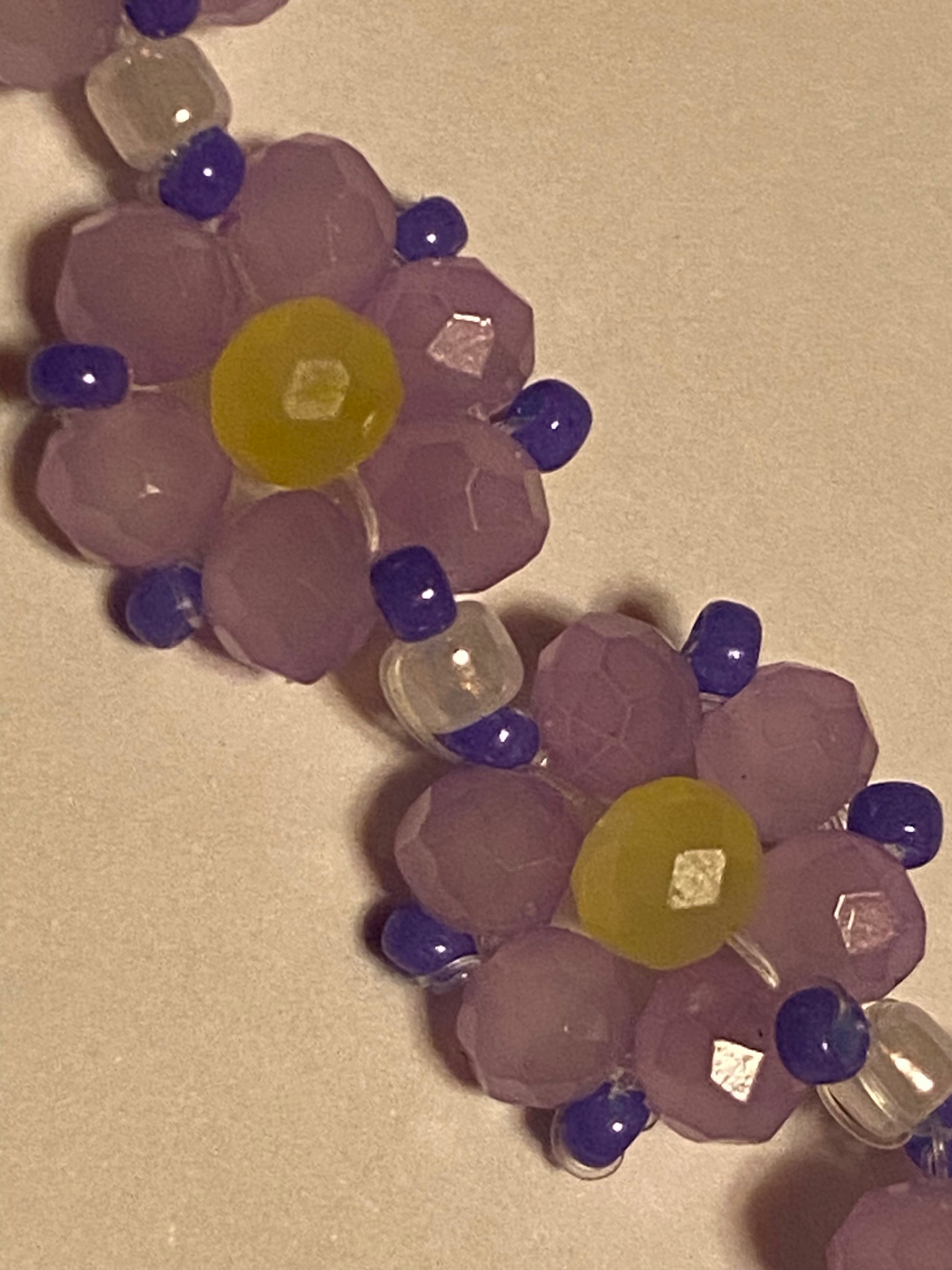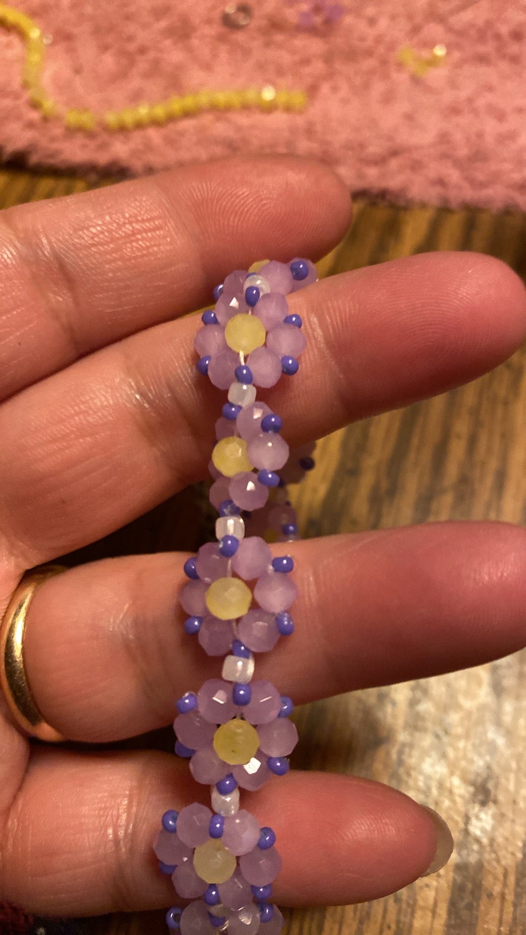 Pretty Pastel Purple Crystal Flower Beaded Bracelet