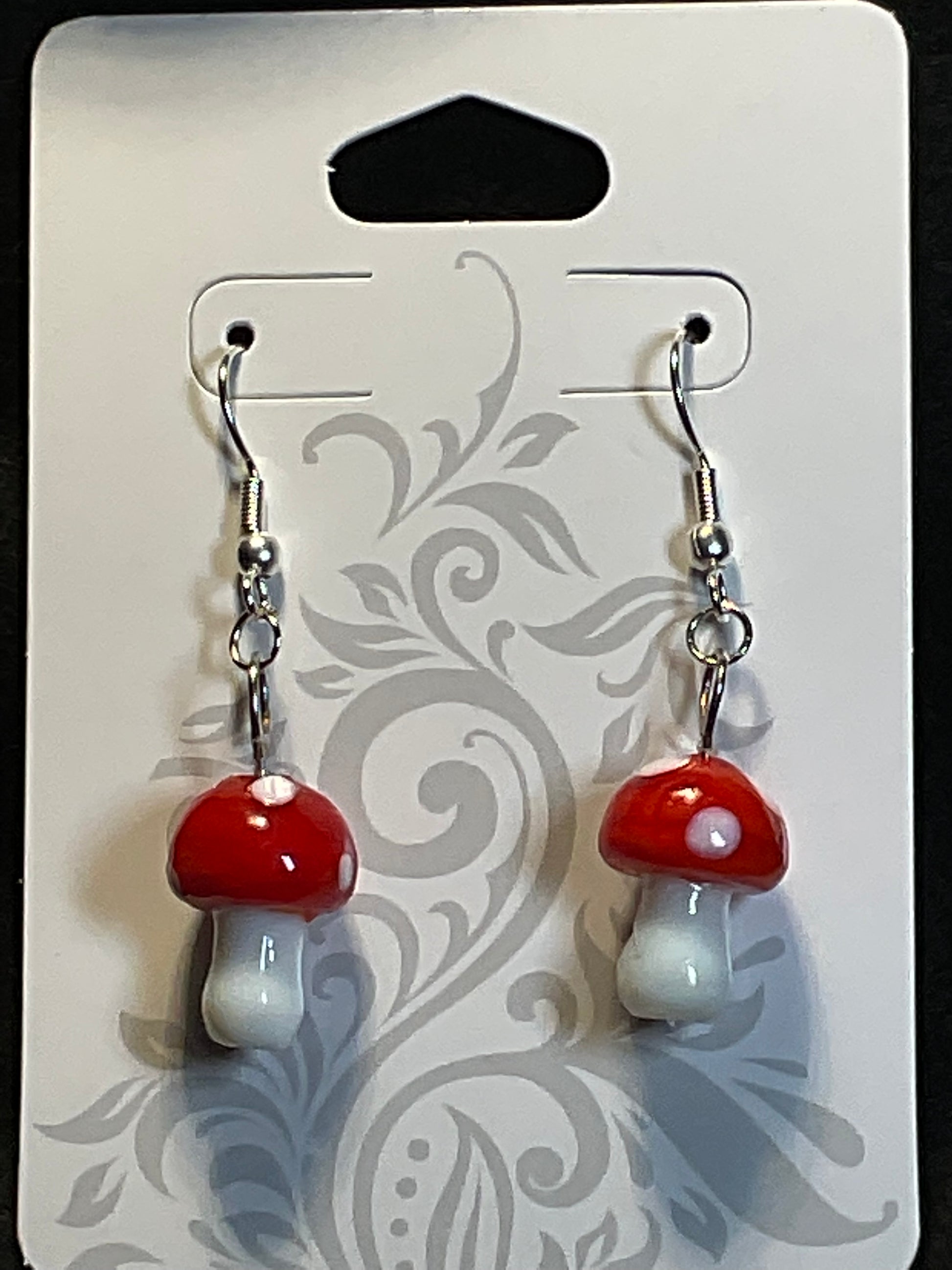 Mushroom Earring’s Red with white spots Mushroom / Toadstool hypoallergenic Earrings Sterling Silver plated French fish hook earrings.