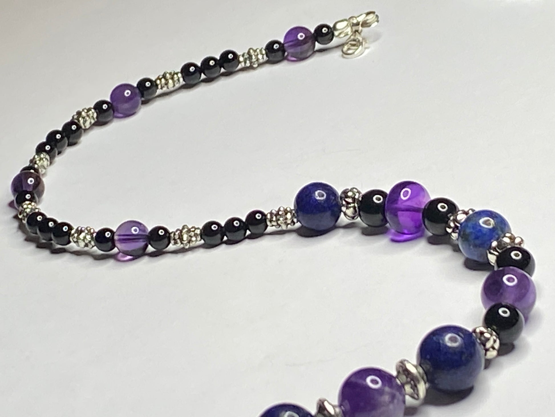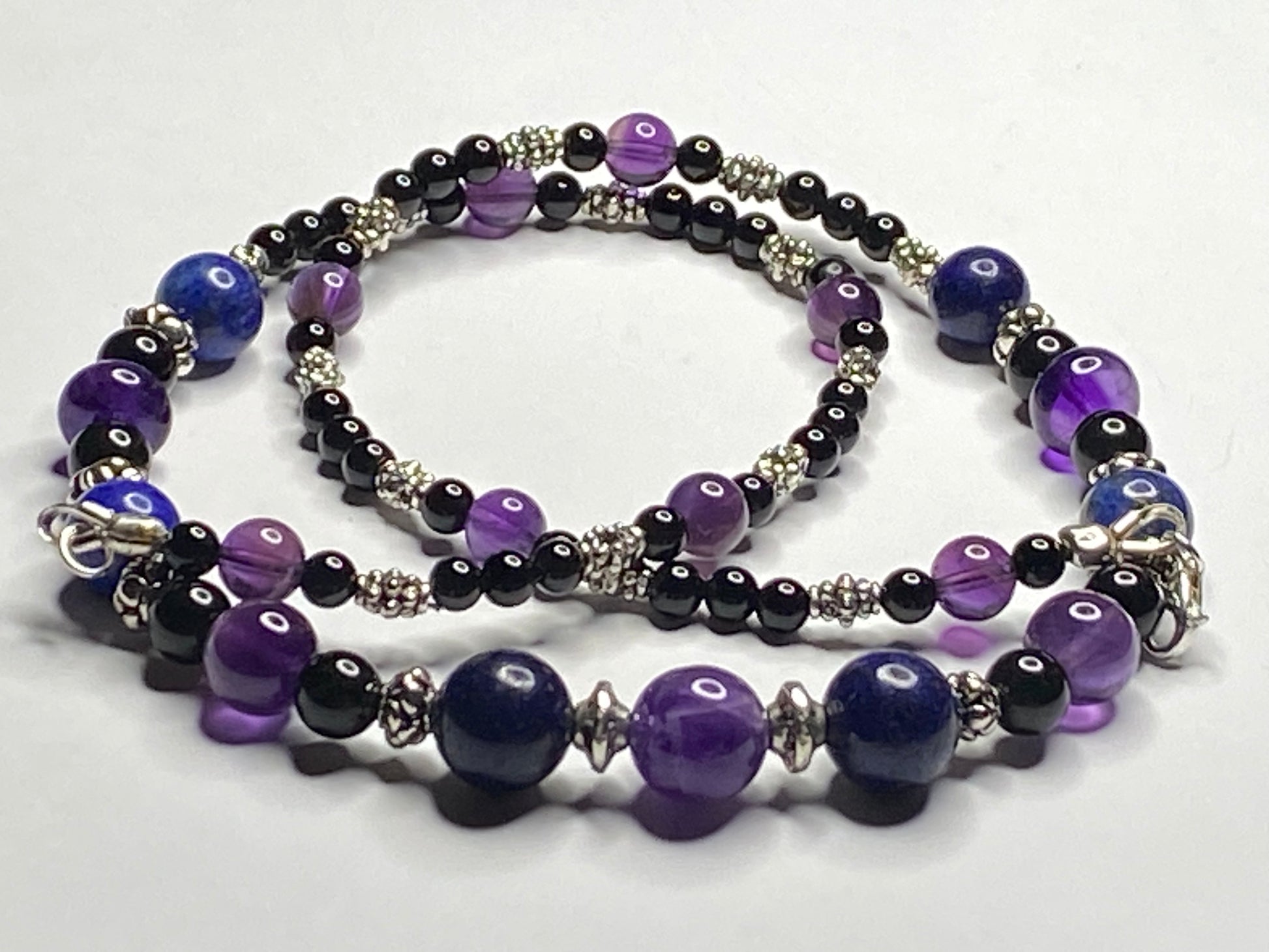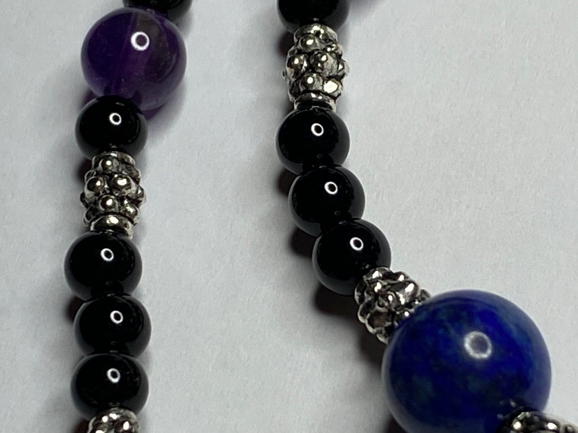 Amethyst, Lapis Lazuli, Black Onyx Necklace & Bracelet set with Sterling Silver Clasps. Extension Chain options